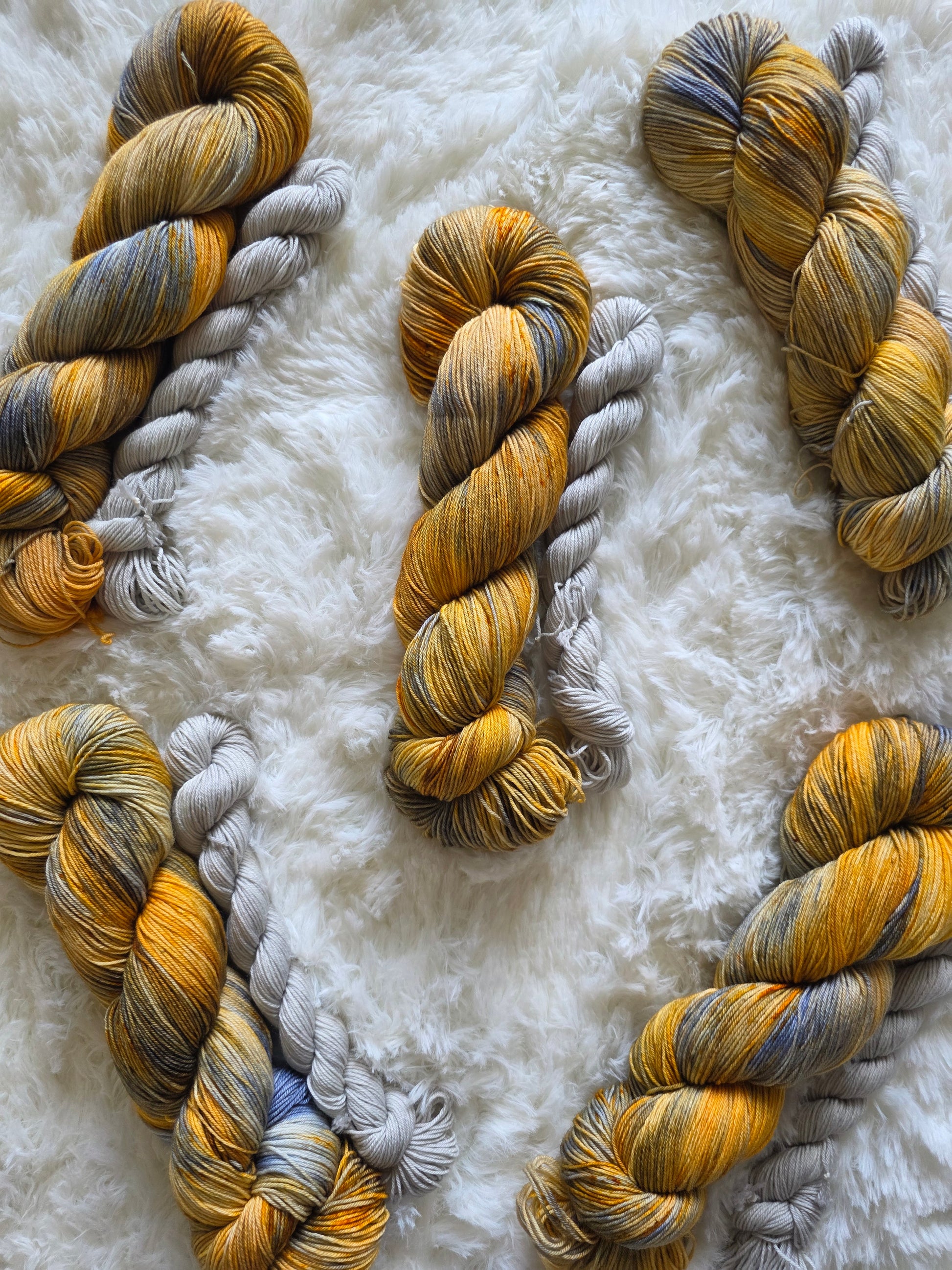 Platinum Sock Yarn Mini Skein: 80% superwash merino wool, 20% nylon | 92 yds total | Fingering weight | US 1-3 needles