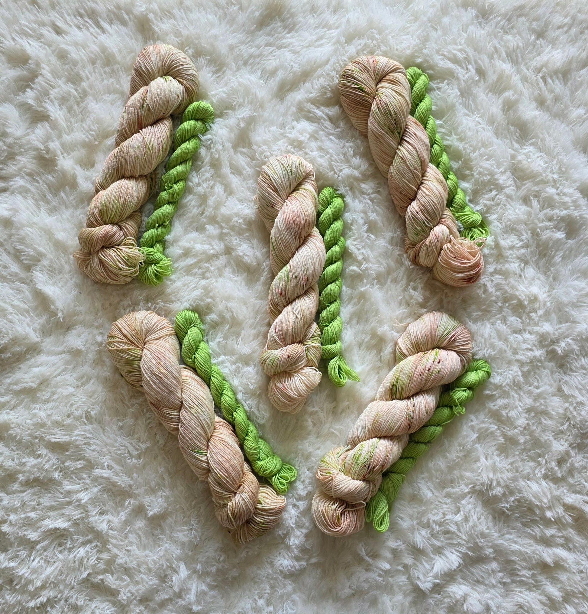 Sip serenity with every stitch. This calming sock kit brings café vibes to your needles—earthy matcha greens, warm brown sugar tones, and creamy latte swirls inspired by your favorite cozy drink.