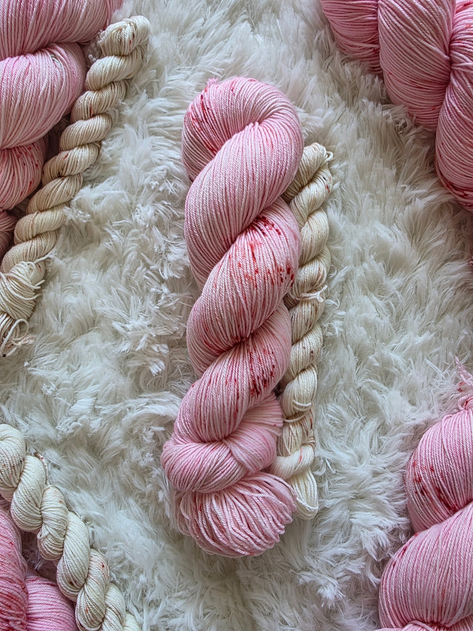Send love with every stitch. This romantic sock kit brings heartfelt sweetness to your needles—soft blush pinks, warm rose tones, and gentle mauve inspired by handwritten love letters.