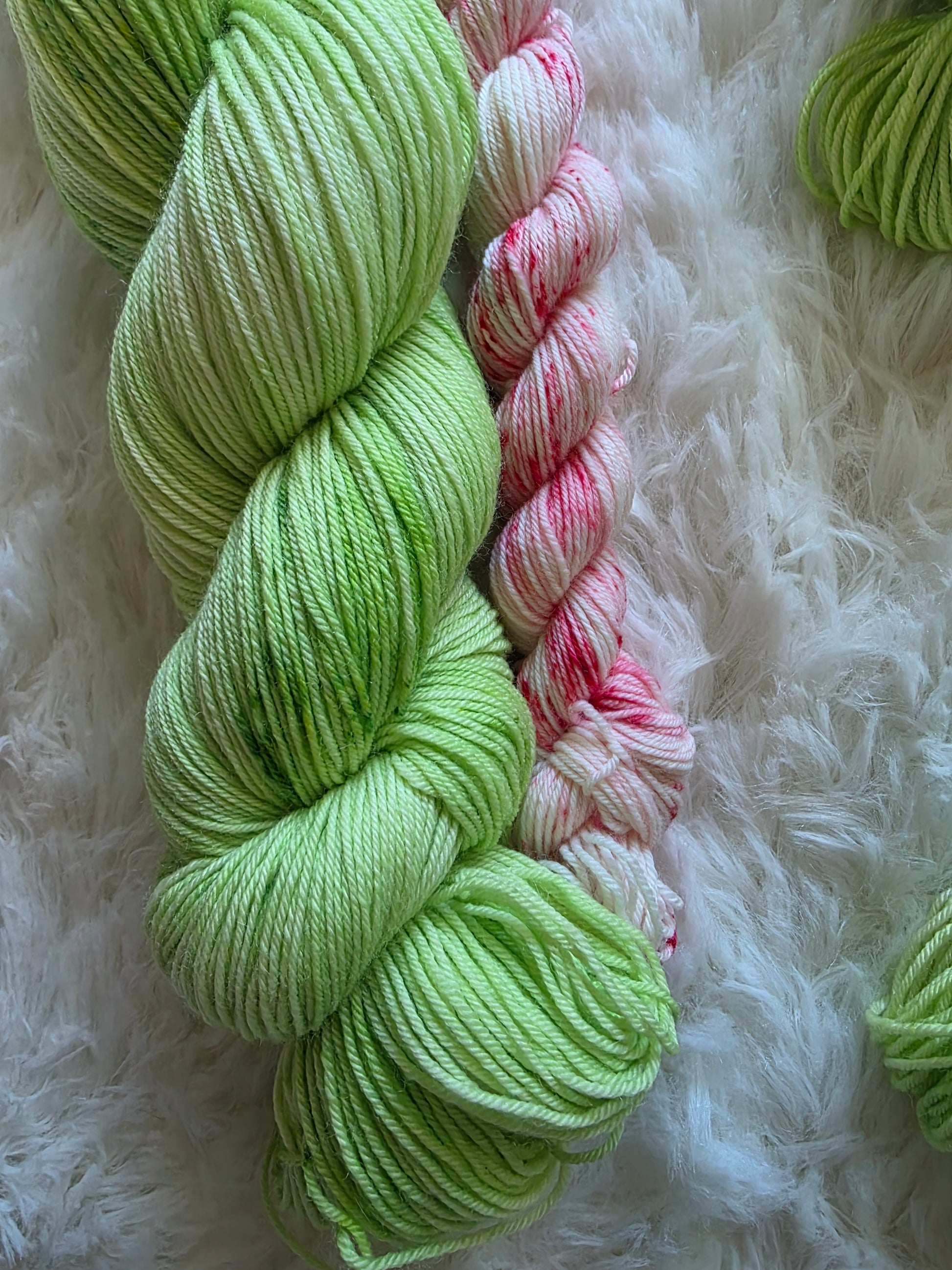 Celebrate lucky vibes with every stitch. This festive sock kit brings minty-fresh charm to your needles—vibrant shamrock greens, creamy vanilla, and playful mint tones inspired by everyone's favorite seasonal treat.